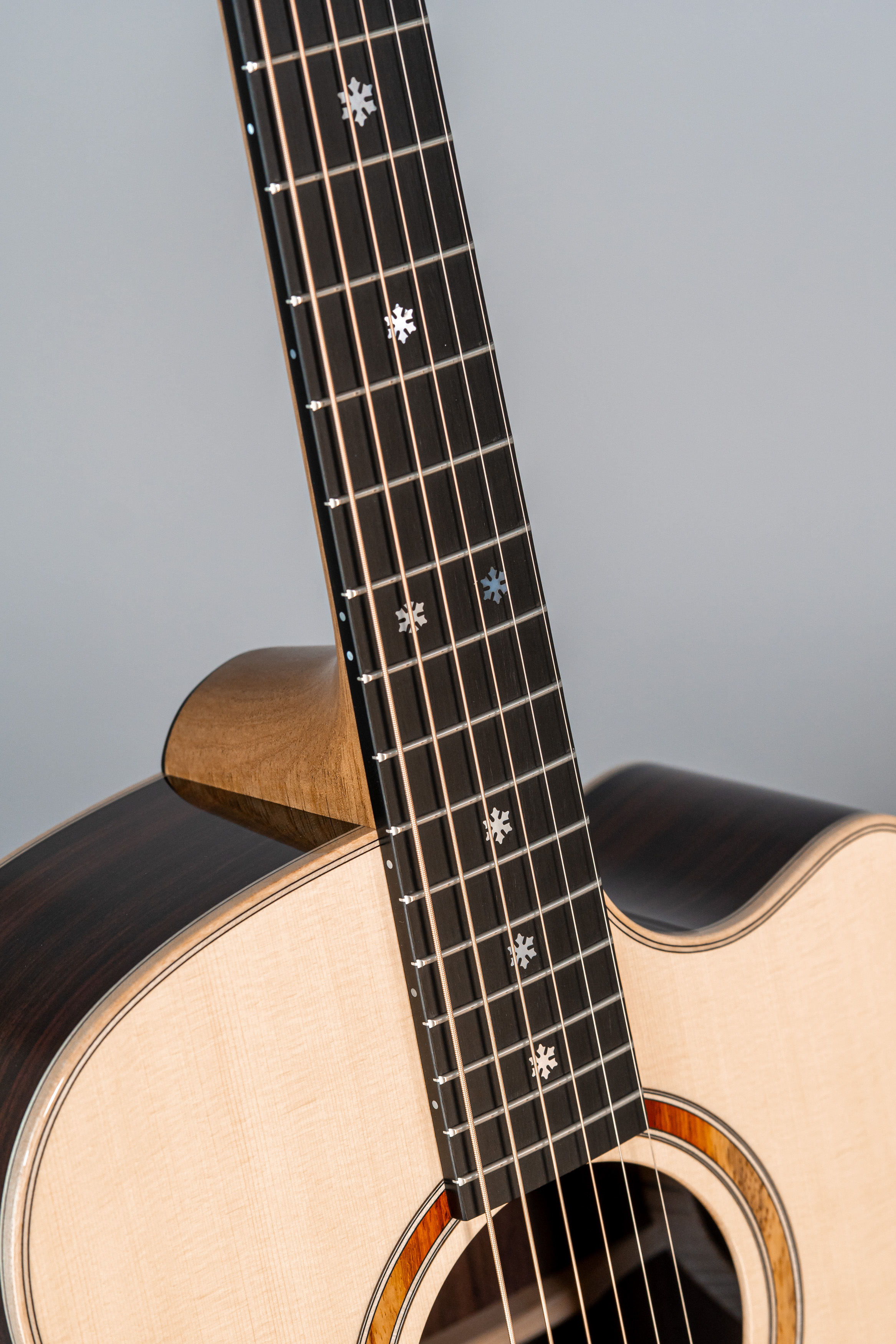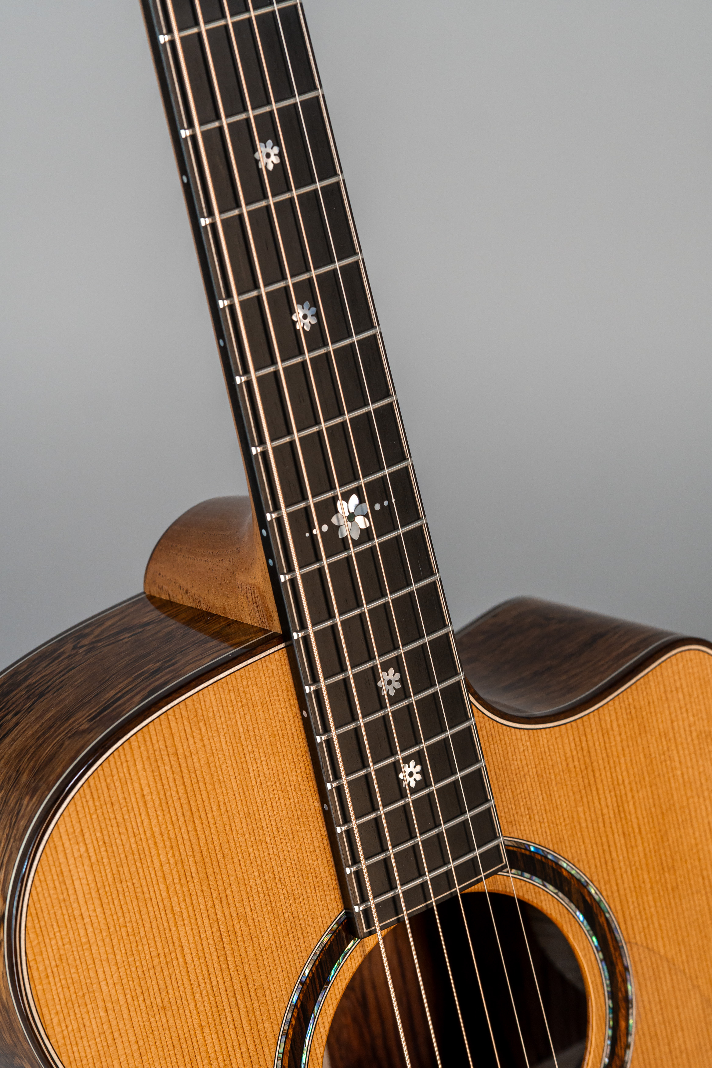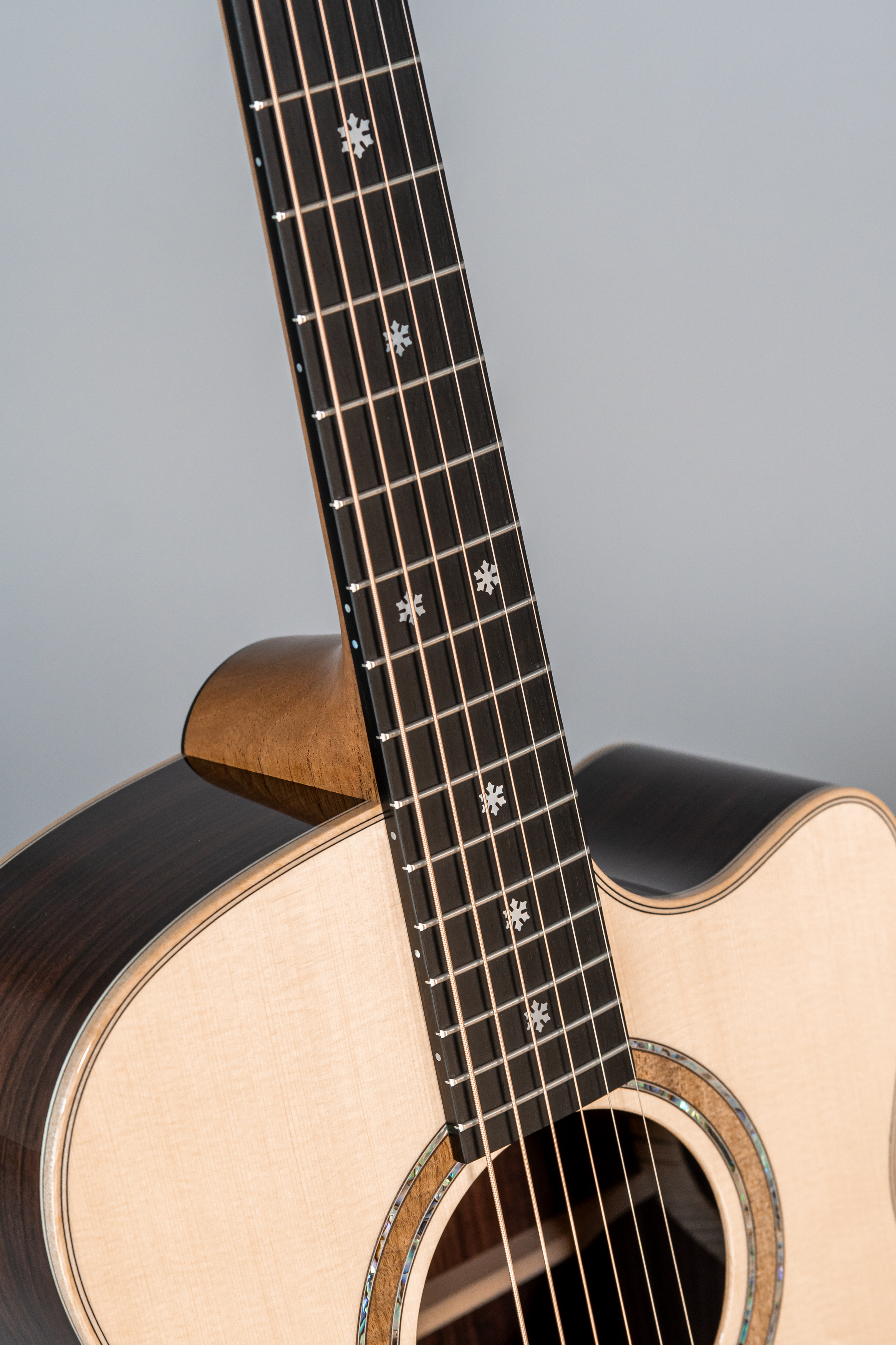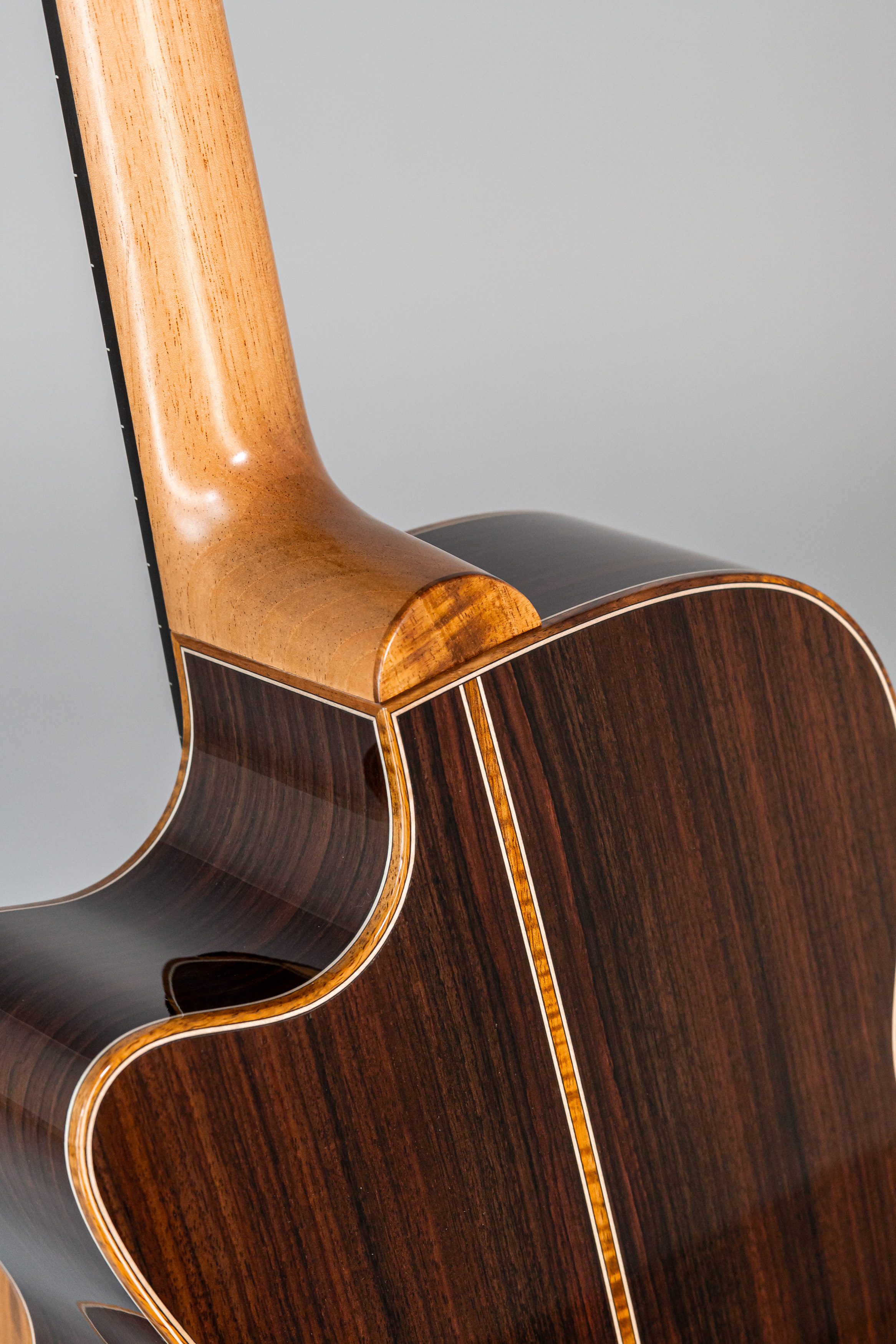 - Abalone-Einfassung der Decke, Zargen und Boden bei Cutaway-Gitarren