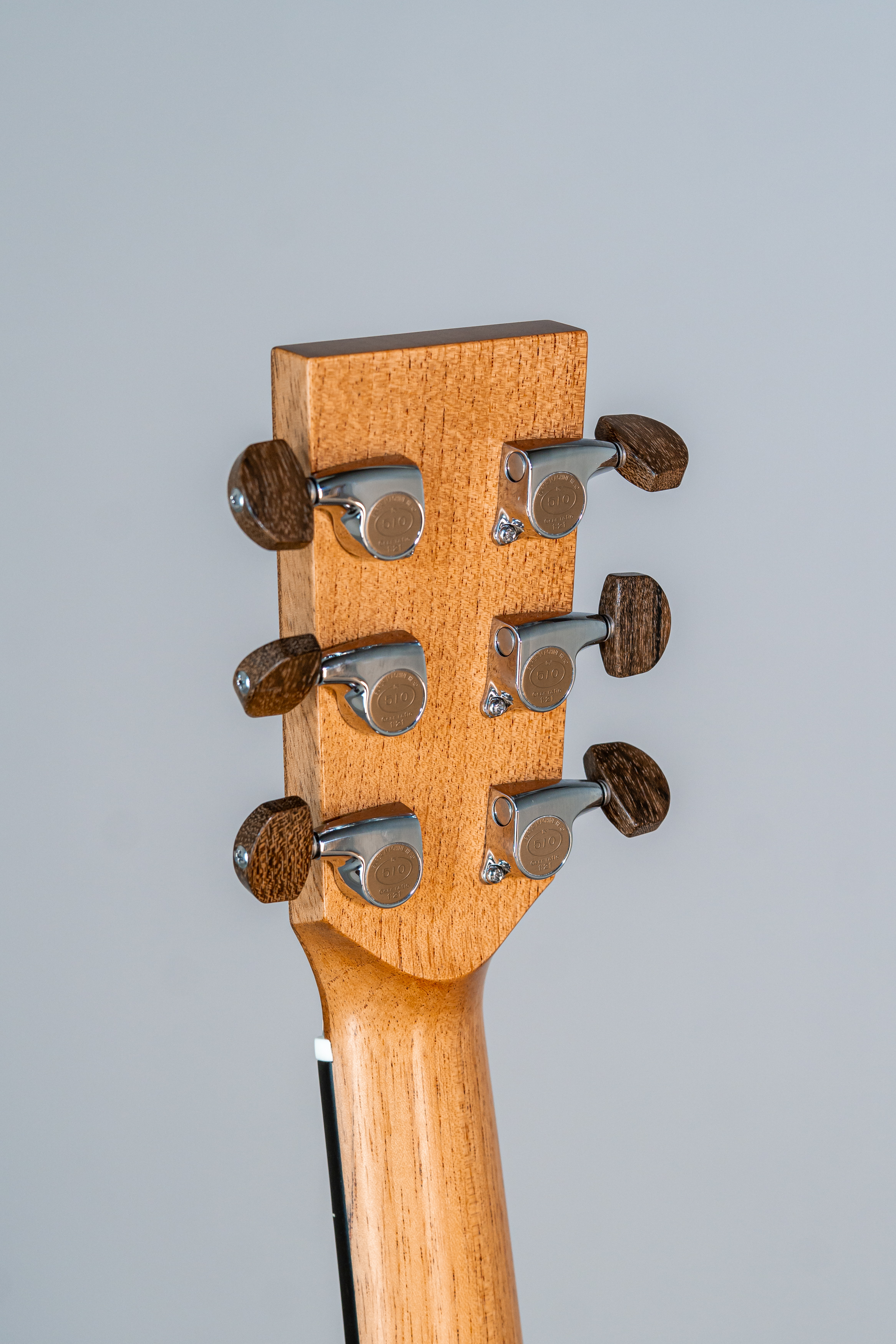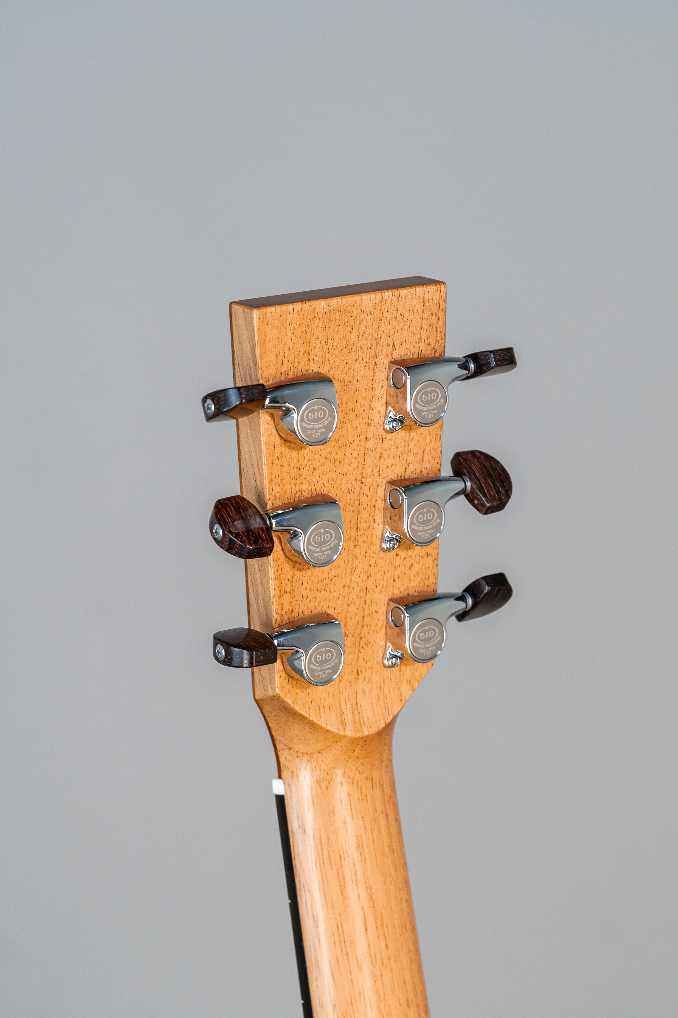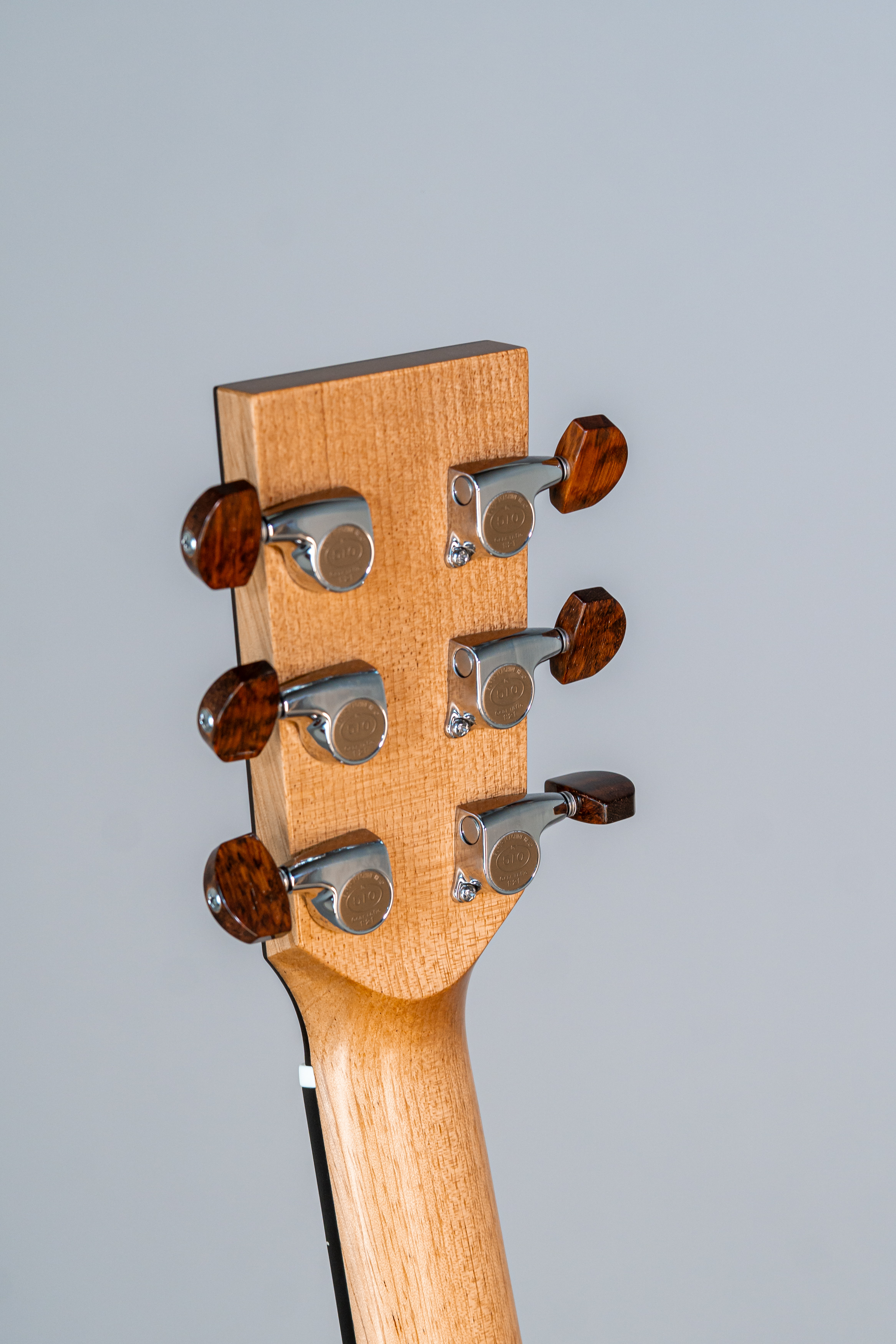 - Kopfplatte auf der Kopf-Rückseite wie Vorderseite mit Rand und Abalone-Einfassung
