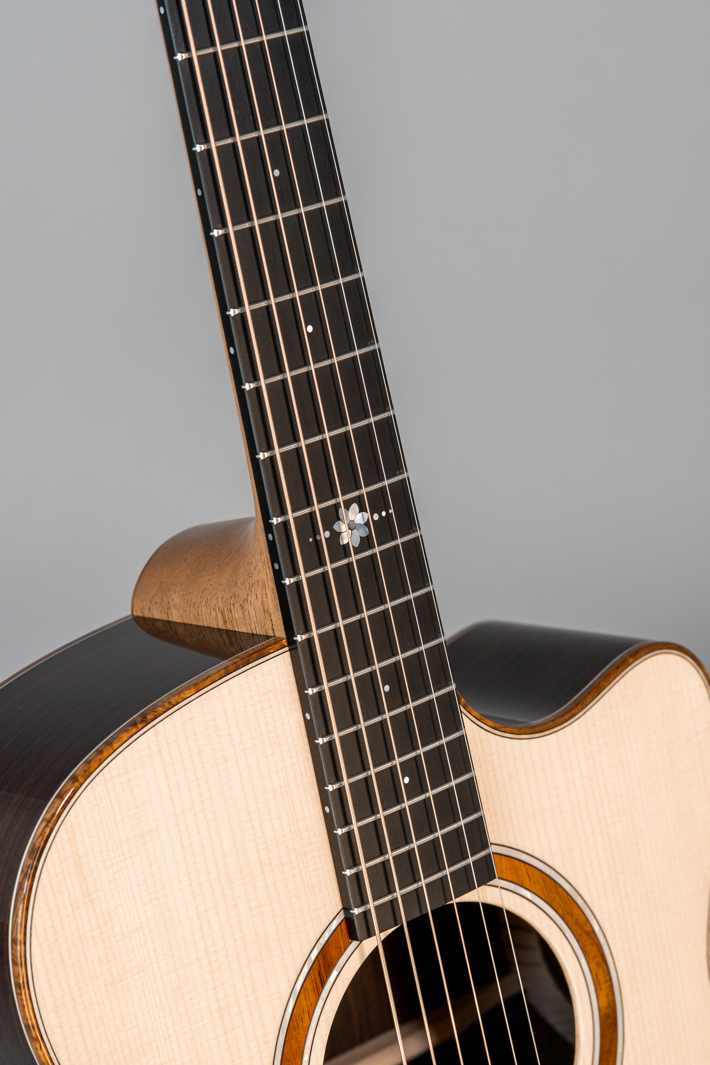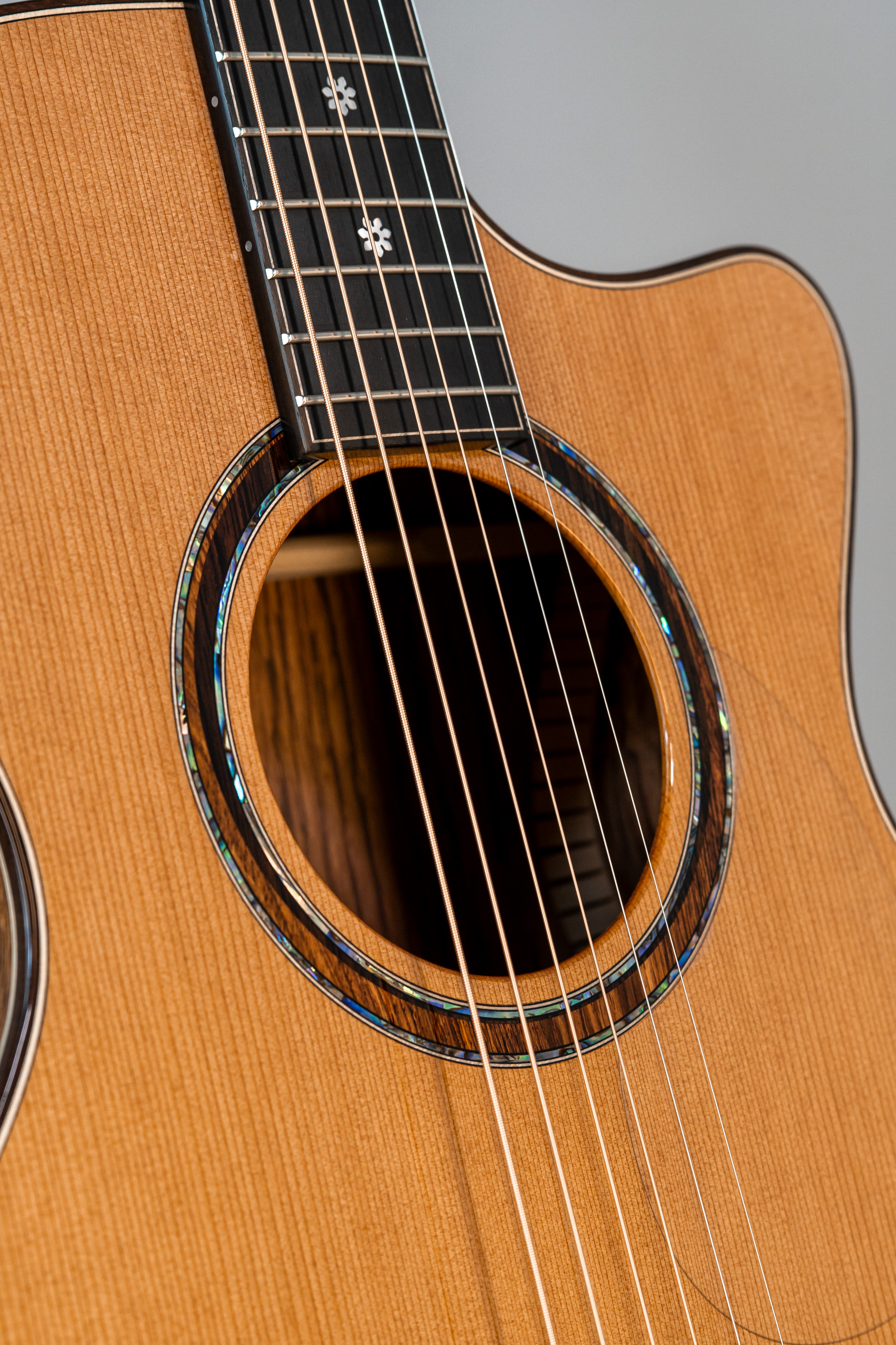 - Abalone-Einfassung der Decke bei Cutaway-Gitarren